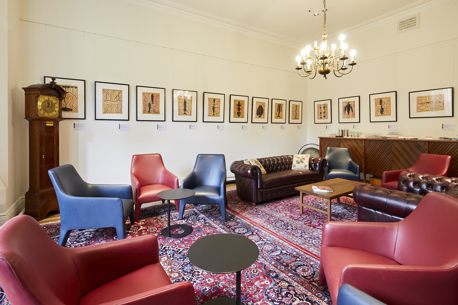 The walls of our SCR are lined with a collection of Indigenous Yolngu artworks by the late Wandjuk Marika. They tell the Yolngu story of Creation and the pieces were kindly presented to Trinity by members of the Marika family.